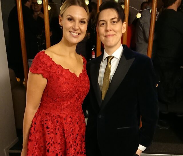 Pic: Adrian with the Allsång på Skansen-host Sanna Nielsen.